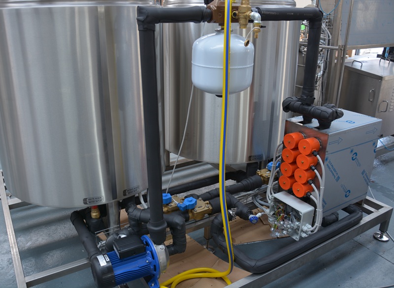 - Caldaia per fornire acqua calda alla sezione di pastorizzazione dello scambiatore di calore a piastre.